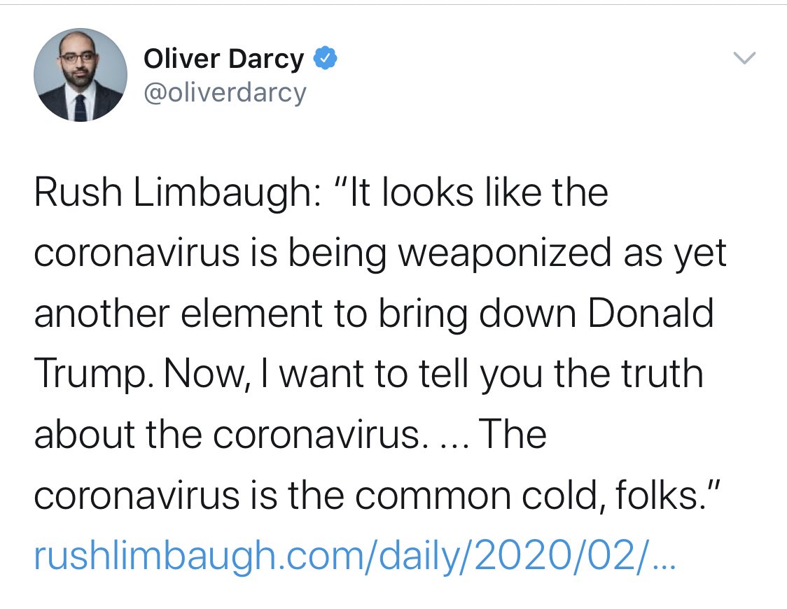 Carl Quintanilla On Twitter Limbaugh Went From It S The Common Cold Folks To The Donner Party Never Complained In Five Months