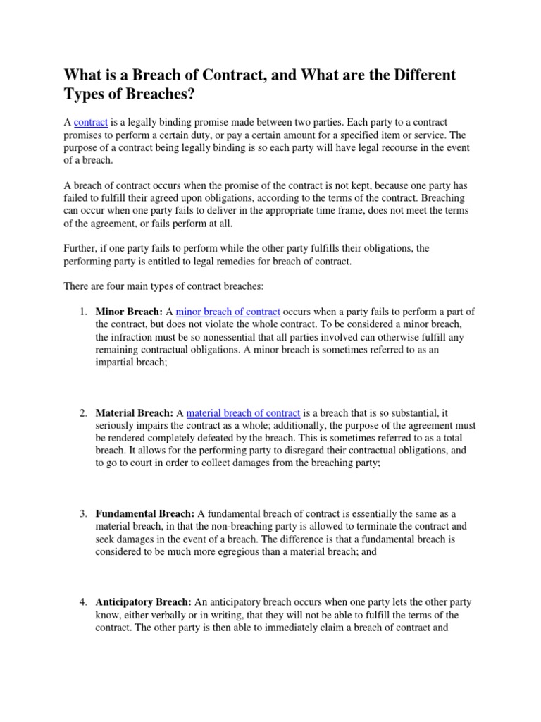 What Is A Breach Of Contract Breach Of Contract Business Law